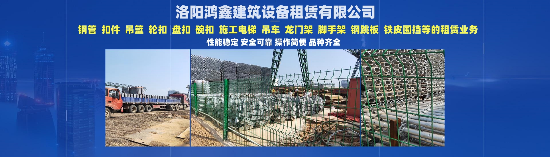 洛陽(yáng)鴻鑫建筑設(shè)備租賃有限公司專業(yè)從事:鋼管.扣件. 吊籃.輪扣.盤(pán)扣.碗扣.施工電梯.吊車(chē).龍門(mén)架.腳手架,鋼跳板、鐵皮...